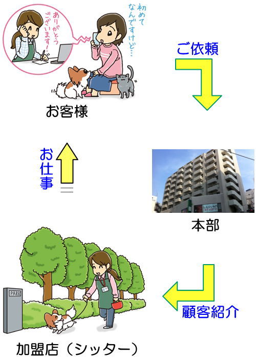 日本ペットシッターサービスでは、加盟店になられる皆様が迷わないよう、開業のお手伝いをさせていただいております。どうぞご安心下さい。 - Q ご依頼は本当にありますか?お客様は増えますか?