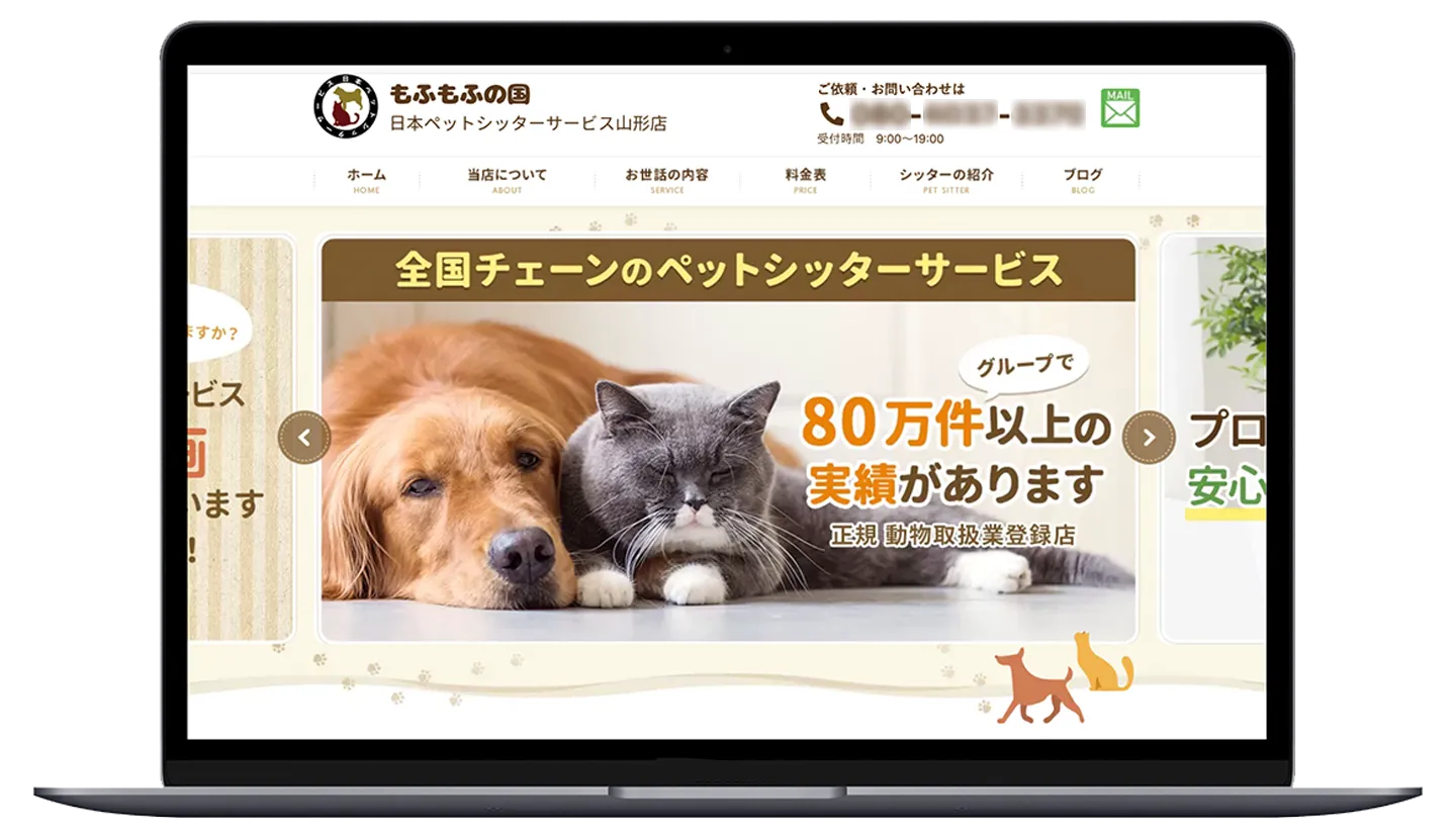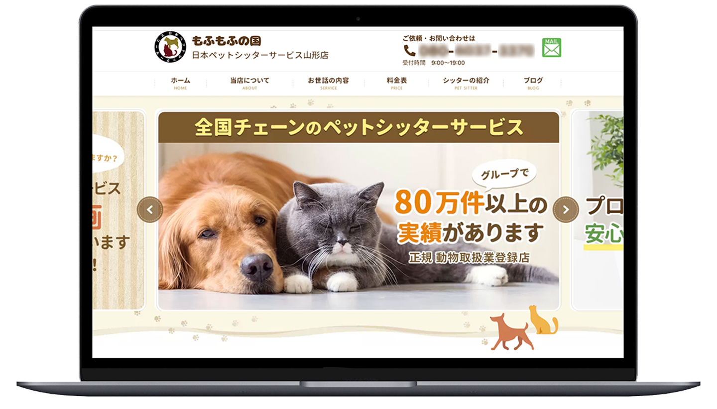 飼い主様がネット検索をした際に、あなたのお店を見つけてもらえるホームページを本部が無料で作成します。